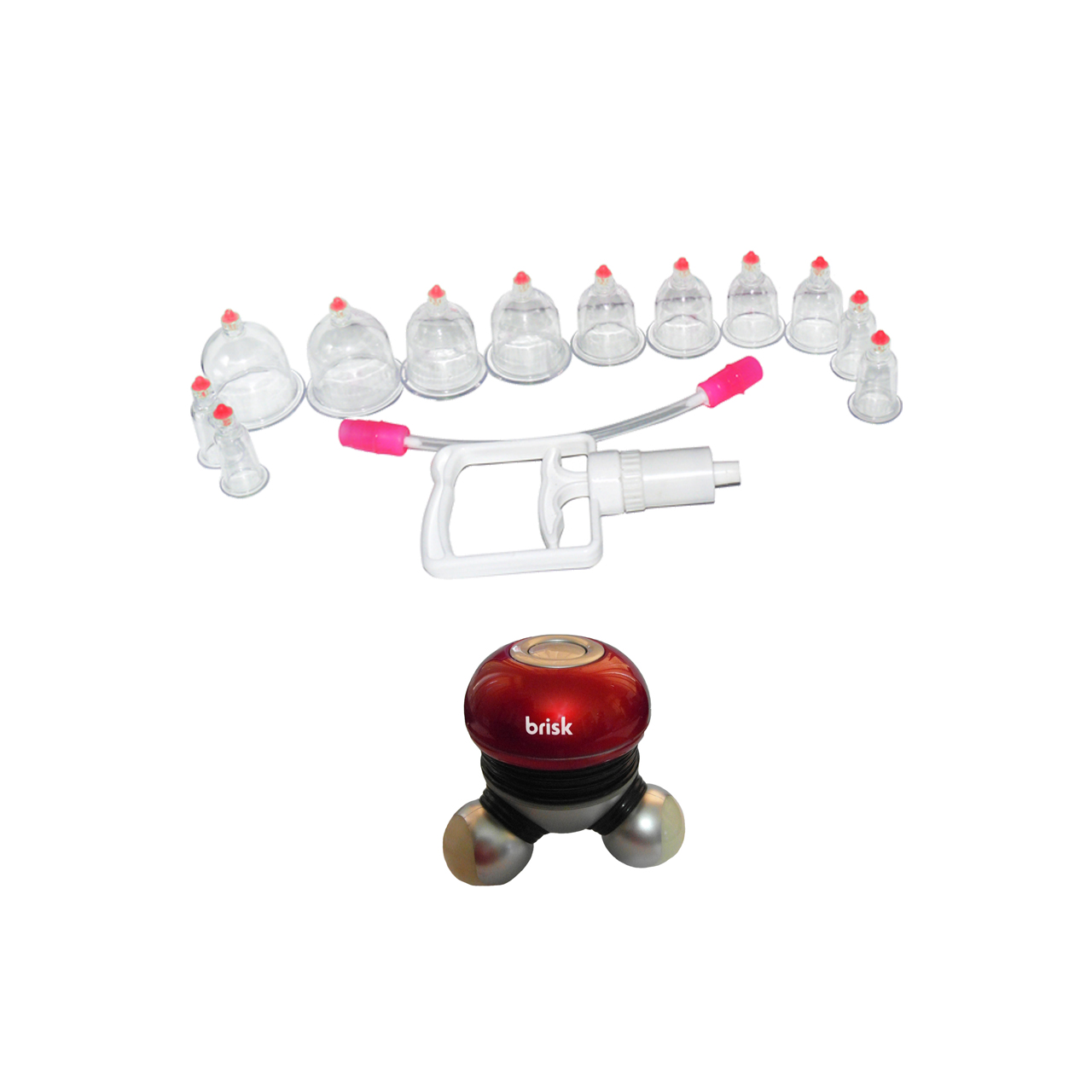 درمانش بادکش بدن 12 لیوانه به همراه مینی ماساژور بریسک سایز L دستگاه های عمومی پزشکی