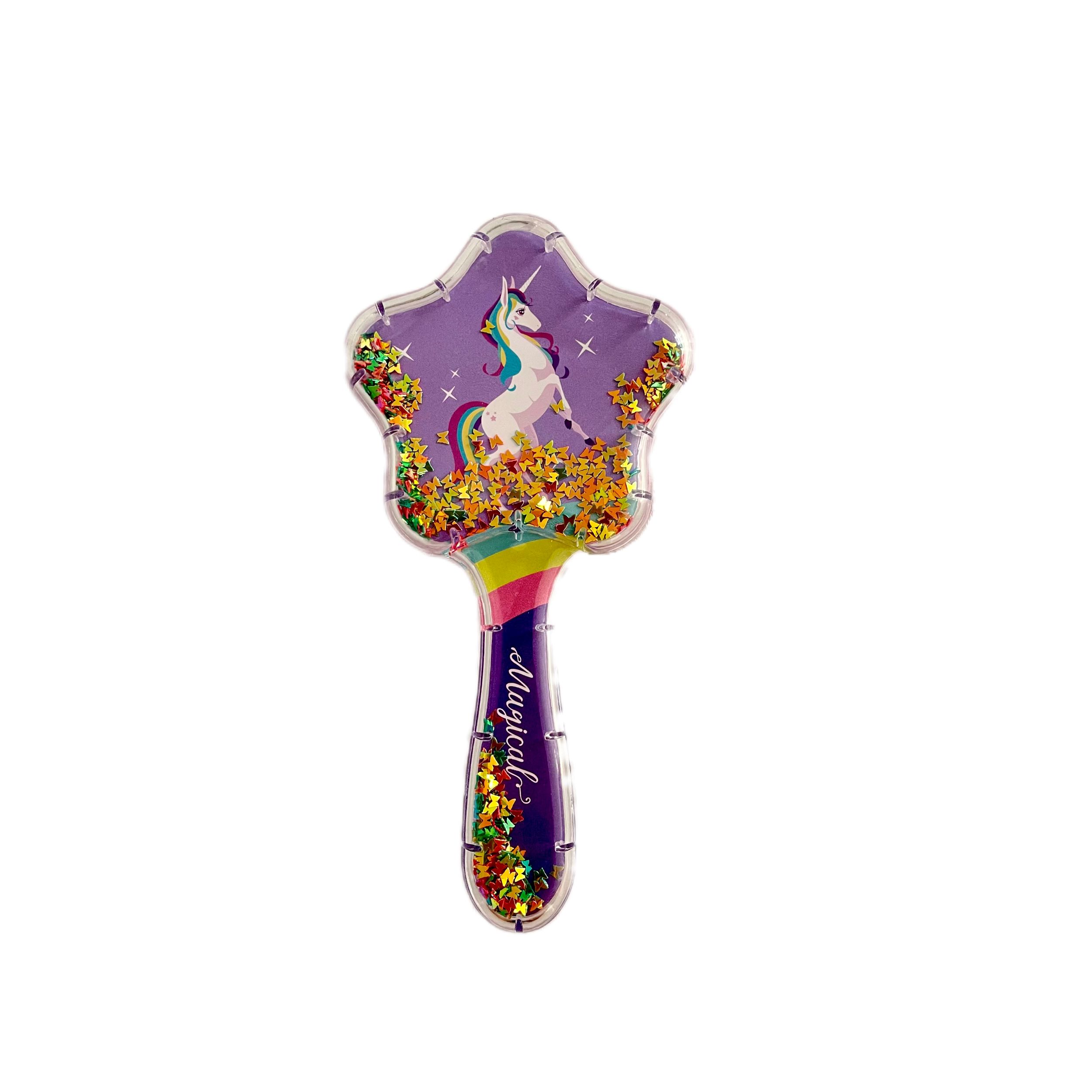 برس آکواریومی طرح یونیکورن دارای پولک های رنگی پروانه ای در پشت آن. این محصول زیبا مناسب کودکان بوده و با دندانه های پلاستیکی و نرم باعث می شود شانه کردن موها به سادکی و نرمی صورت پذیرد.