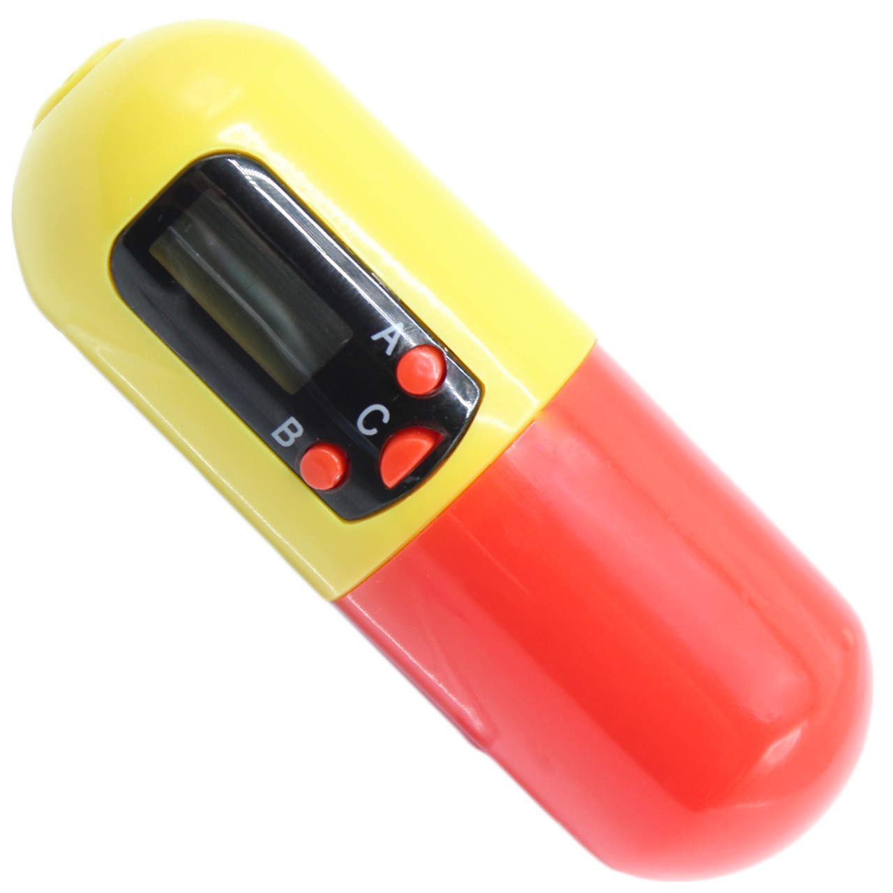 بسیاری از افرادی که با مشغلهی کاری زیادی روبهرو هستند به خاطر سپردن کارهای مختلف از جمله مصرف دارو در زمان معین برای آنها کار بسیار مشکلی است. بنابراین وسیلهای که بتواند این مشکل را برای آنها برطرف کند میتواند برای این افراد بسیار سودمند باشد. یادآور داروی Medicine Box Timer Type که توسط شرکت B.S Group ساخته شده است امکاناتی دارد که احتمال فراموش کردن زمان مصرف دارو را به حداقل میرساند. این وسیله که ظاهری کپسول مانند دارد شامل 2 بخش جداگانه با 2 رنگ متفاوت است. بخش سبز رنگ که برای نگهداری دارو به کار میرود و بخش زرد رنگ که برای تنظیمات ساعت استفاده میشود. روی بخش زرد رنگ 3 دکمه با نامهای A، B و C وجود دارد. با استفاده از دکمههای A و B به ترتیب میتوان ساعت و دقیقه را تنظیم کرد. با زدن دکمهی C دستگاه شروع به شمارش معکوس کرده و نور صفحه نمایش کم و زیاد میشود. با فشردن مجدد و 2 ثانیهای دکمهی C، تایمر به حالت تعویق در میآید. با فشردن مجدد دکمهی C، شمارش معکوس مجددا شروع میشود. پس از به پایان رسیدن زمان تنظیم شده، زنگ هشداربه صدا در میآید. پس از به پایان رسیدن زنگ هشدار، با فشردان مجدد دکمهی C میتوان زمان هشدار را مطابق با زمانبندی قبل به راه انداخت. با فشردن کلیدهای A و سپس B میتوان آخرین تنظیمات را لغو کرد و زمانبندی مجددی را به راه انداخت.
