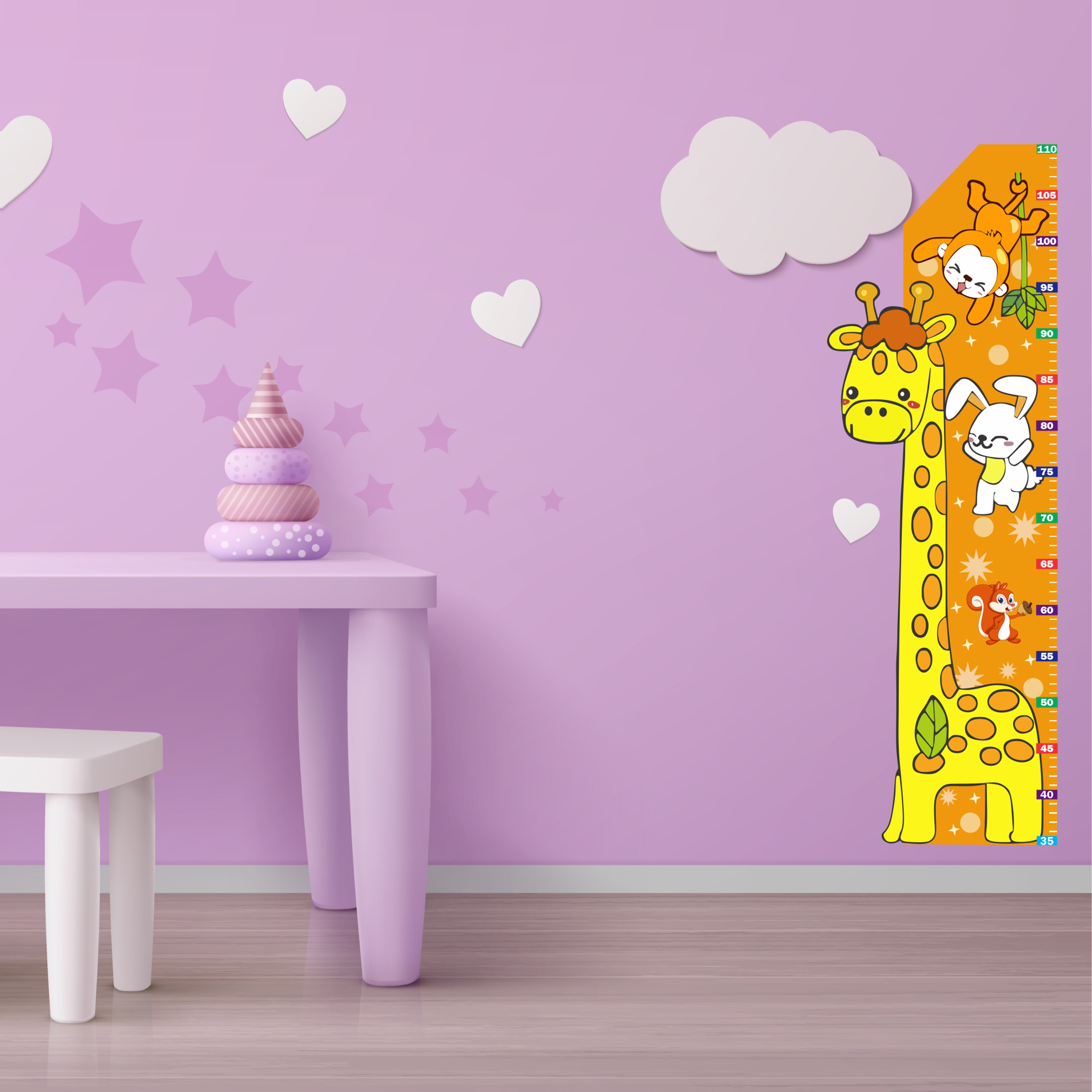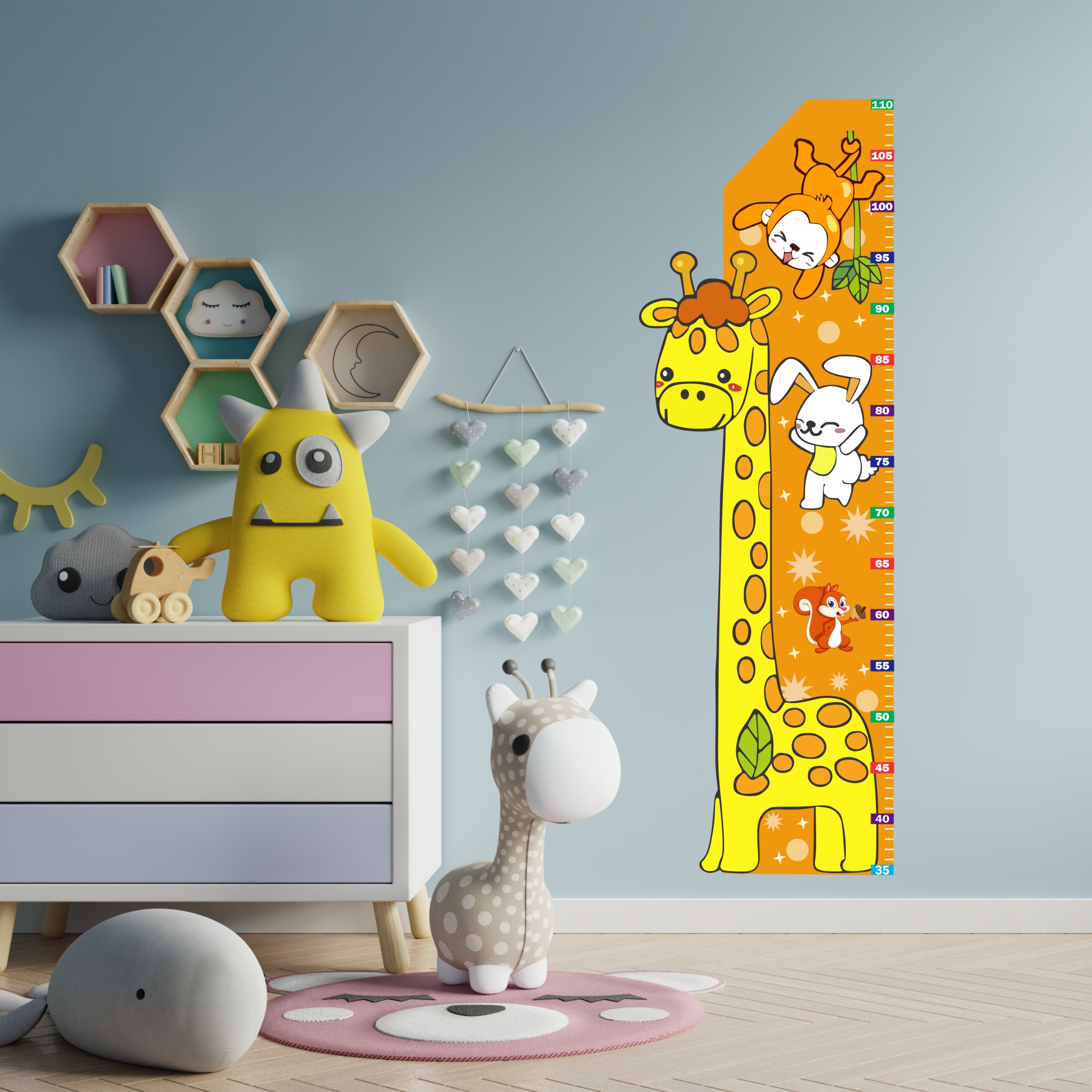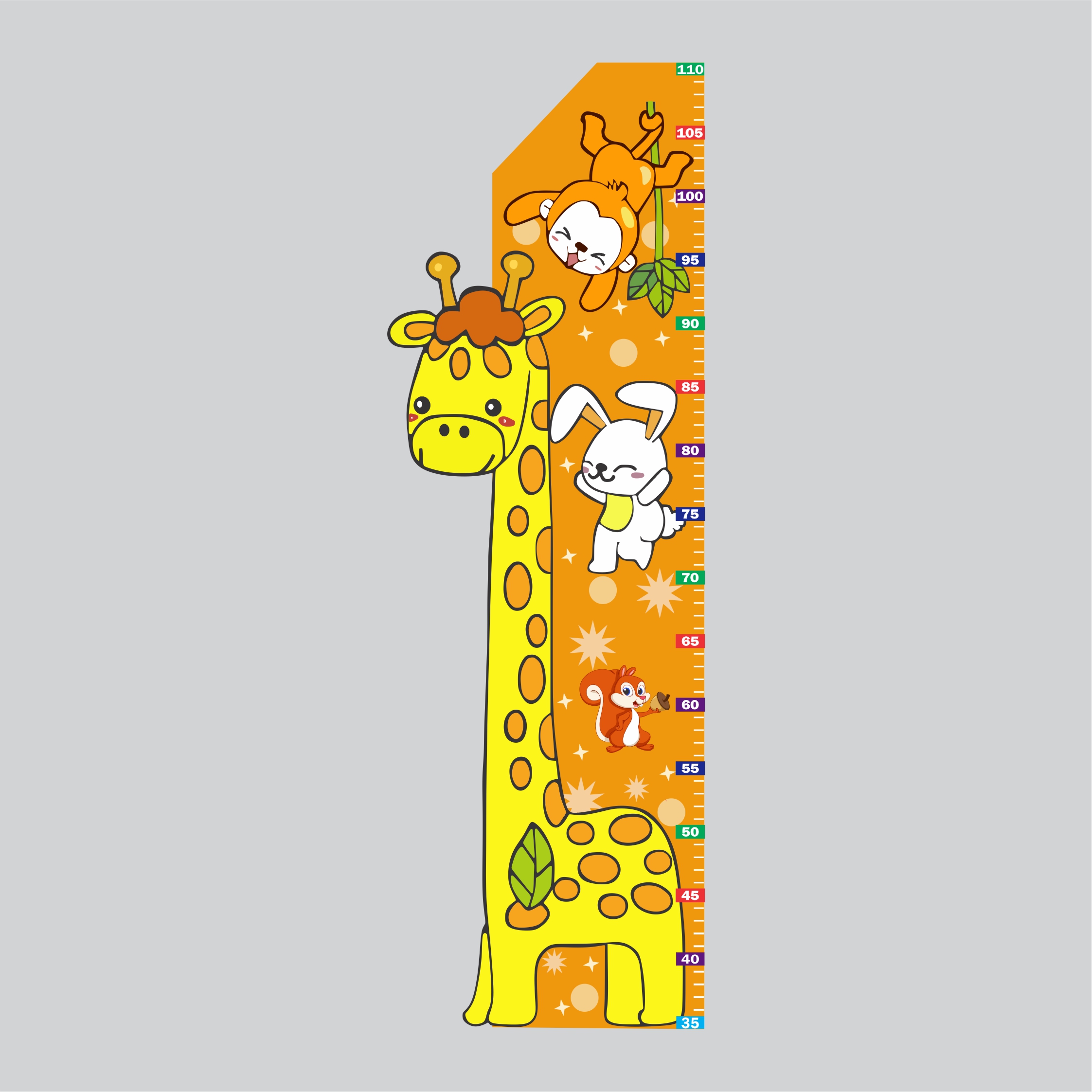 طرح زیبای زرافه به دلیل بلند بودن گردن همیشه به عنوان یک یار ثابت در استیکرهای اندازه گیری قد مورد استفاده قرار می گیرد.محصول تولید شده دارای روکش یووی می باشد، چسبندگی بالایی دارد و ضد آب است.