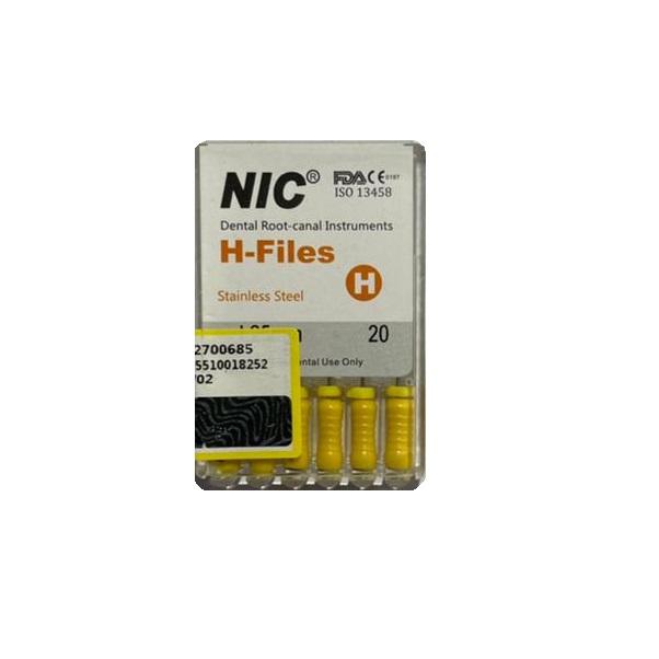 H فایل دستی ان آی سی ساخت کشور چین است و دارای استاندارد FDA آمریکا / CE اروپا است . این فایل سطح مقطع نامتقارن دارد وبرای انواع کانالها کلسیفیته، منحنی، باریک و … استفاده میشود.