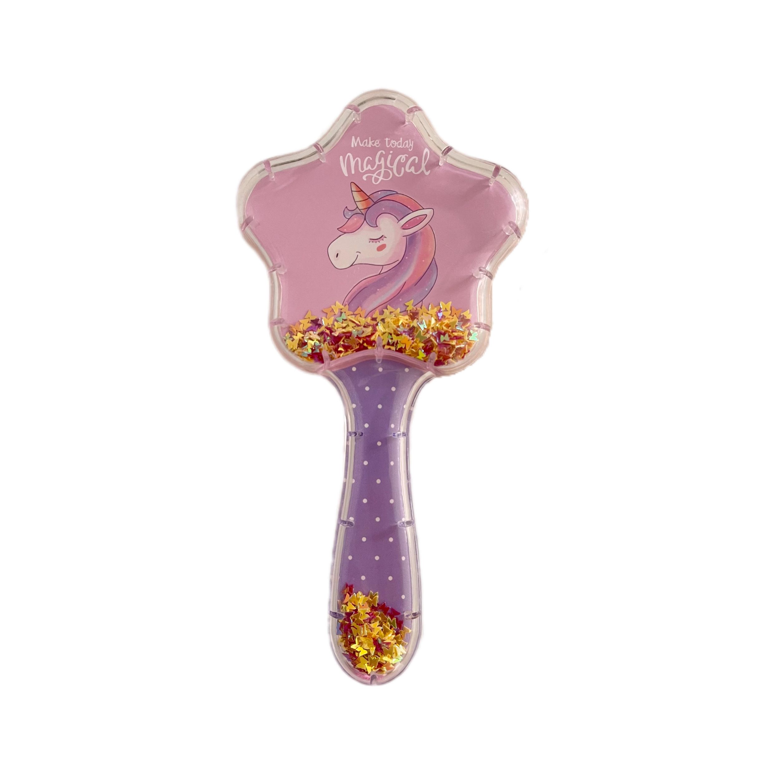 برس آکواریومی طرح یونیکورن دارای پولک های رنگی پروانه ای در پشت آن. این محصول زیبا مناسب کودکان بوده و با دندانه های پلاستیکی و نرم باعث می شود شانه کردن موها به سادکی و نرمی صورت پذیرد.