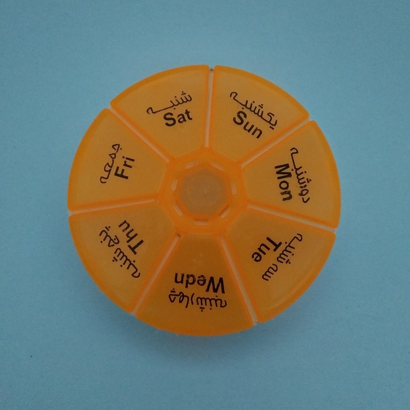 جعبه قرص هفتگی مناسب استفاده قرص ها به صورت هفتگی است. برای هر روز دارای محفظه جداگانه و کلیددار است و به راحتی برای سالمندان زمان استفاده از قرص ها قابل تشخیص است. این جاقرصی به گونه ای طراحی شده که جای کمی نیاز دارد و می توانید جعبه قرص را با خود حمل کنید. ابعاد کوچک, وزن بسیار کم و کیفیت بالای مواد اولیه که باعث دوام و کارایی بالای محصول شده است آن را به گزینه ای بسیار ایده آل برای قرار دادن در کیف و حمل آسان بدون ایجاد مزاحمت نموده است.
