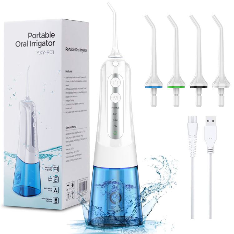 داشتن دندانهای سالم و سفید از مهمترین عوامل در زیبایی افراد است و میتوان با یکبار هزینه صحیح، این سلامتی و زیبایی را سال ها همراه داشت. واتر جت دندان خانگی دستگاهی است که با پاشیدن آب با فشار به دندانها و لثهها، جرمهای باقی مانده و باکتریهای مضری که در اعماق دندانها و لثهها مخفی شده اند و حتی با مسواک از بین نمیروند را از دهان خارج مینماید. دستگاه واتر جت دندان خانگی علاوه بر پاک کردن فواصل بین دندانها، میتواند به کاهش التهاب و خونریزی لثه، جرم گیری بهتر ، تمییز کردن بریجها و دندانهای ایمپلنت و روکش شده کمک نماید. با وجود اینکه ایمپلنتها ازمواد ضد پوسیدگی تولید میشوند اما واتر جت دندان میتواند با از بین بردن جرمهای باقی مانده در اطراف ایمپلنت از عفونت و التهاب لثه و در نتیجه سست شدن ایمپلنت جلوگیری کند که این امر در دوام و ماندگاری ایمپلنت ها تاثیر مشهودی دارد.این واترجت با داشتن سری ارتودنسی میتواند تمام جرم های اطراف سیم ارتودنسی را هم رفع کند. پس می توان نتیجه گرفت که با خرید این دستگاه در واقع چند دستگاه راه همزمان تهیه کردهاید. واتر جت دندان خانگی مدل 801 YXY دستگاهی با ابعاد متناسب برای استفاده خانگی است که با داشتن 4 سری میتواند انتخابی کاملا مناسب برای استفاده هر روزه هر نفر محسوب شود. این مدل دارای مخزنی به حجم 300 میلی لیتر میباشد که در کنار حجم مناسب قابلیت جدا شدن برای پر کردن مجدد و شست و شوی راحت تر را نیز داراست. این محصول ضد آب با استاندارد IPX7 و باتری با ظرفیت 2000 میلی آمپر و همچین توانایی تنظیم فشار آب در 4 حالت مختلف soft , normal , pulse و DIY باعث شده که یک دستگاه بسیار مناسب برای ماساژ لثه ها و همچنین پاک کردن پلاکتها و جرمهای اطراف دندان شما به شمار رود. این مدل دارای سری مخصوص جهت تمیز کردن زبان هم میباشد که این امکان را به شما میدهد که علاوه بر سلامت دندان و لثه های خود به راحتی مراقب سلامت زبان خود نیز باشید.