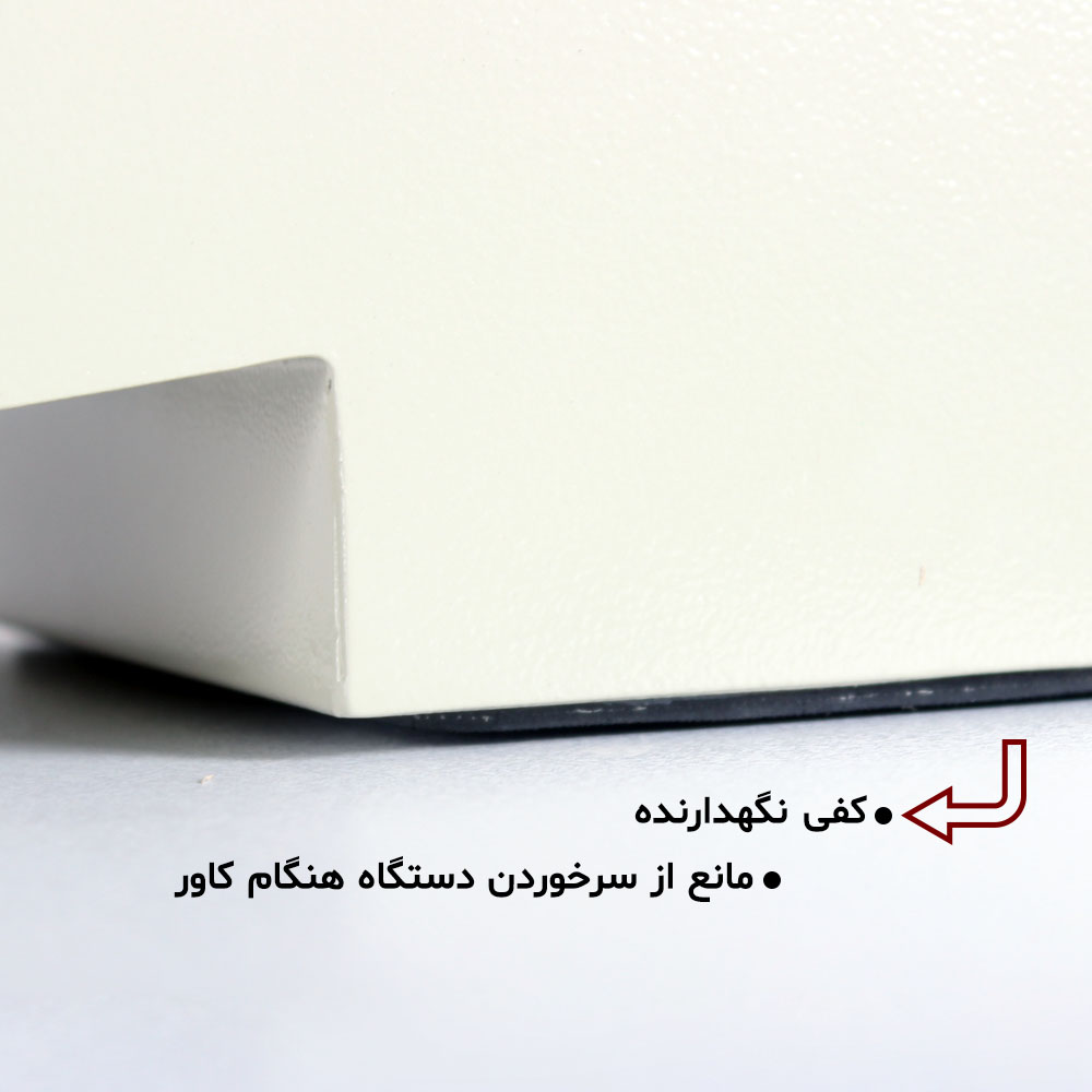 دستگاه کاور کفش آذین صنعت دارای بدنه فلزی و رول چسبی برای استفاده 600 عدد کفش مناسب جهت مکان های حساس به انتقال آلودگی می باشد.بیشترین میزان انتقال آلودگی در محیط های حساس از طریق کف کفش می باشد . استفاده از کاور کفش در این موارد بسیار معمول میباشد.این مدل نایلون مخصوص به زیر کفش چسبیده و از انتقال آلودگی جلوگیری میکند (برای برخی از افراد سوال پیش می آید که روی کفش چرا پوشش داده نمیشود؟ البته این مدل روی کفش را پوشش نمیدهد ولی عموما روی کفش آلودگی وجود ندارد و این مدل کف کفش و کناره های کفش را پوشش می دهد.لوازم مصرفی این دستگاه از رول کاور کفش با تعداد 600 عدد تامین میشود که با یکبار قرار دادن رول 300 جفت کاور را جوابگو می باشد. هزینه این رول تقریبا یک پنجم نایلون مدل های دیگر دستگاه کاور کفش می باشد.جنس بدنه این دستگاه از فولاد با ضخامت 1.3 میلیمتر می باشد که با رنگ کوره ای پوشش داده شده و در مقابل ضربه مقاوم است و برای مکان های پر رفت و آمد نیز میتوان استفاده کرد.داخل دستگاه تشکچه وجود دارد که با فشار دادن کفش درون آن نایلون به کفش میچسبد ؛در هنگام نیاز به شستشو و یا تعویض روکش آن را جدا نموده (توسط زیپ) و مجددا در سر جای خود قرار داد.در جلوی دستگاه یک عدد تیغه فلزی از جنس استیل وجود دارد که برای برش رول قرار دارد از ضخامت مناسب با طول عمر بالا و بدون کُند شدن ساخته شده است.در زیر این دستگاه یک عدد صفحه ضد لغزش از جنس لاستیک قرار گرفته است که در هنگام استفاده از جابجایی دستگاه کاور جلوگیری میکند.ابتدا کفش را در قسمت میانی دستگاه فشار داده و به سمت عقب کشیده و با استفاده از تیغه لبه رول را برش دهید. برای بهتر شدن ظاهر کاور کفش لبه های جلو و عقب را روی کفش برگردانید.