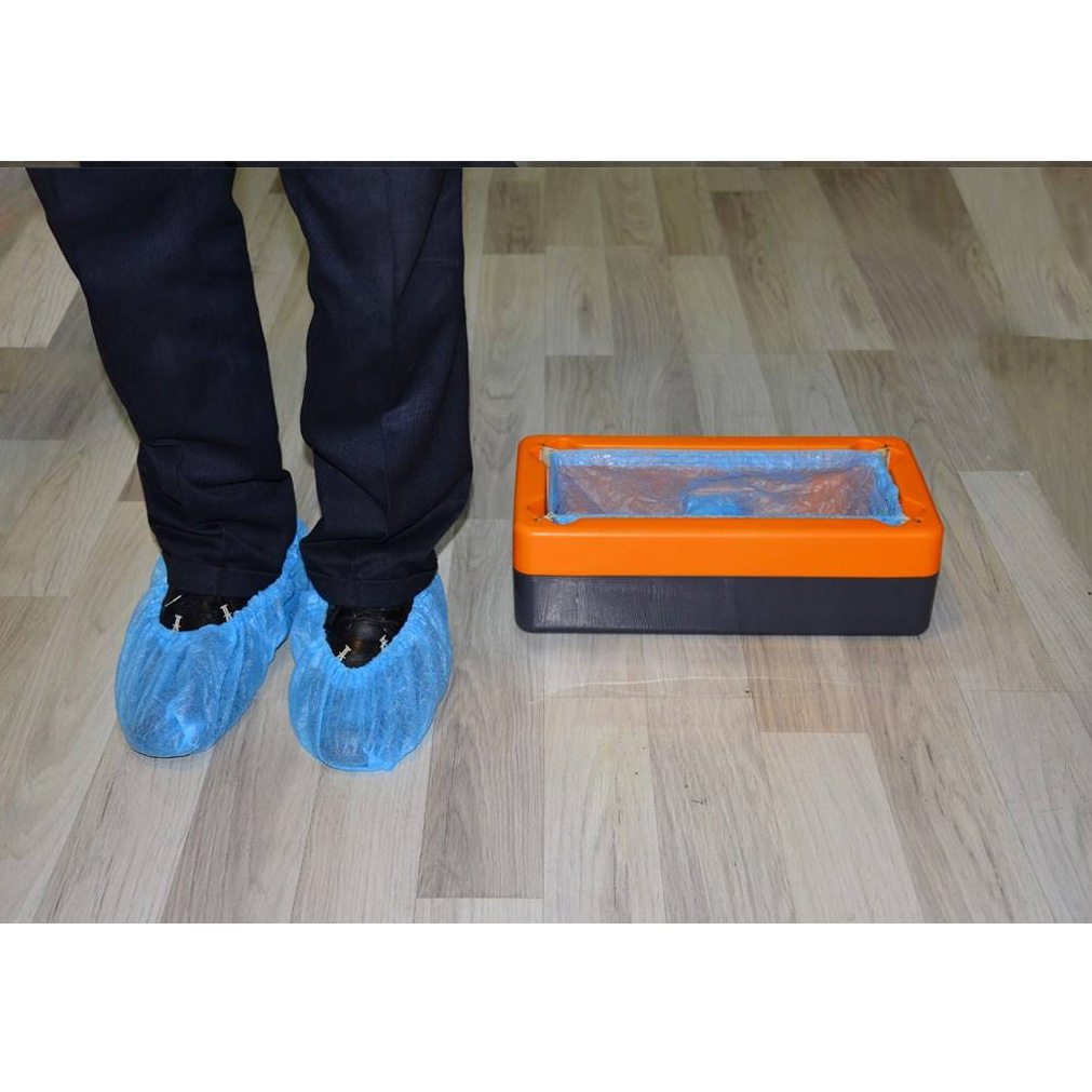 استفاده از کاور کفش در مکان های حساس به آلودگی نیاز به کاور کفش می باشد . پوشیدن کاور کفش با توجه به خم شدن فرد استفاده کننده ؛ برای افراد مشکل است و برای حل این مساله نیاز به دستگاه کاور کفش می باشد . دستگاه کاور مکانیکی آذین صنعت قابلیت قرارگیری تا 50 عدد کاور مخصوص T شکل را دارد. کارکرد این مدل بدون برق و باطری است و با فشار کفش به صورت مکانیکی کار می کند و برای استفاده فقط کافیست پا را در وسط این دستگاه فشار داده تا کاور بر روی کفش قرار گیرد. این نوع نایلون کاور تا کاملا زیر و بالای کفش را پوشش داده و از ورود آلودگی کاملا جلوگیری نماید .