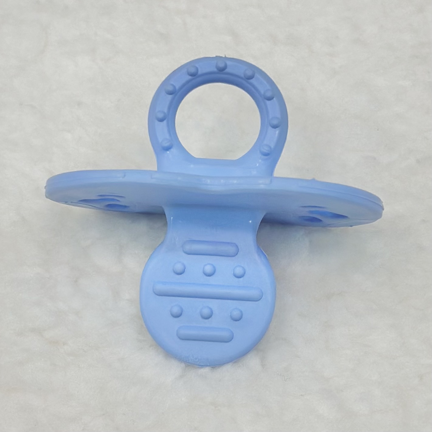 از سن 4 ماهگی نوزاد است که کم کم خارش لثه های نوزاد شروع می شود و کودکان با به دندان کشیدن هر چیزی سعی در تسکین التهاب و خارش لثه های خود دارند.دندان گیر ها دارای تنوع و انواع گوناگون هستند , اما خیلی اوقات کودکان به سبب وزن بالا یا ابعاد بزرگ دندان گیر ها خیلی به گرفتن آنها تمایل نشان نمی دهند و بیشتر سعی بر این دارند که با دست و انگشتان خود التهاب و خارش لثه ها را از بین ببرند.در این شرایط دندانگیری که در تصویر می بینید می تواند بسیار مفید واقع شود, چون به سبب طراحی به شکل پستانک , کمک میکند که این محصول به صورت کامل داخل دهان نوزاد یا کودک قرار گیرد و با ساخته شدن از جنس سیلیکون نرم بتواند بهترین عملکرد ممکن را برای کودک داشته باشد.