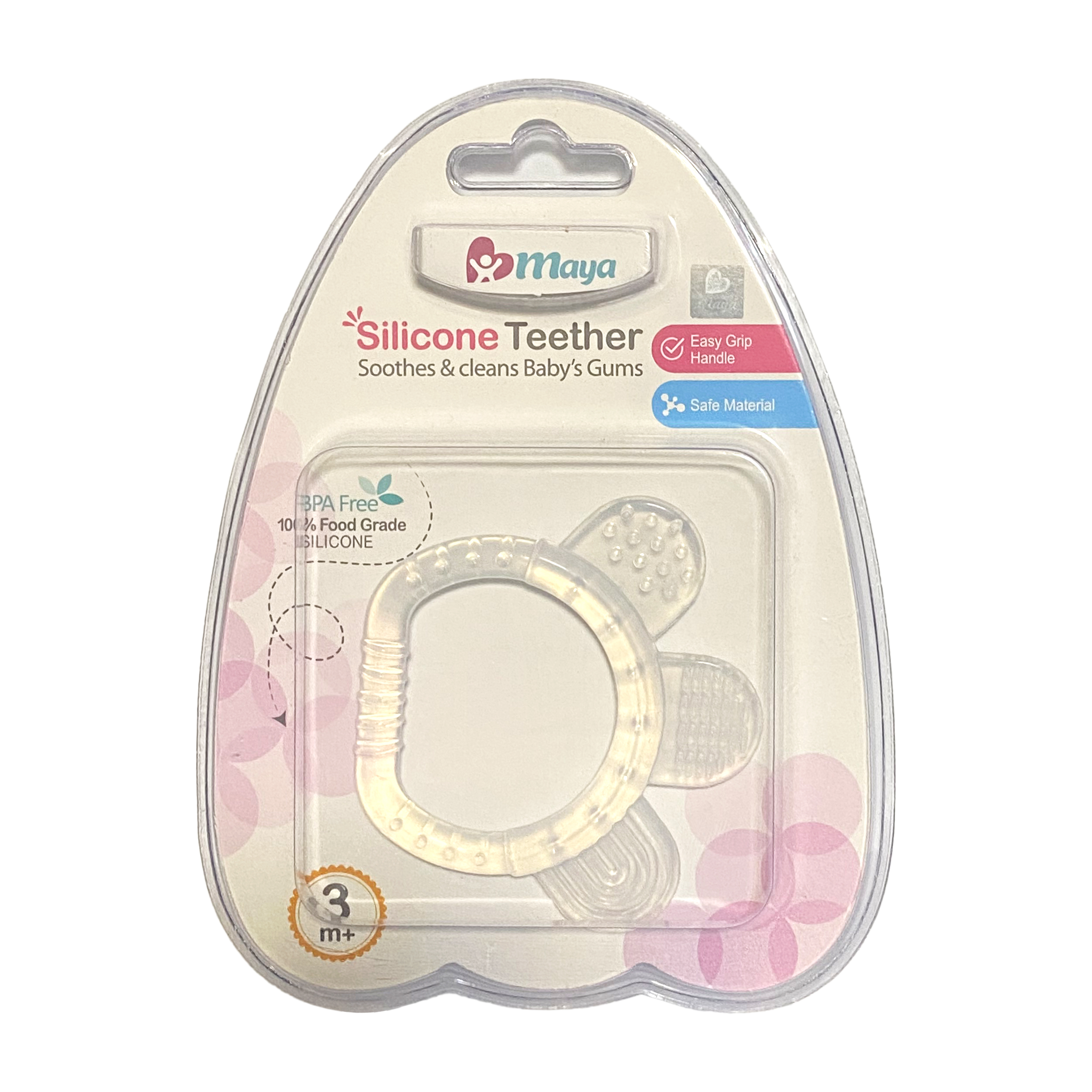 دندان گیر تمام سیلیکونی مایا برای تسکین درد و خارش لثه های کودک طراحی شده است ، در این محصول از سیلیکون خالص ، نرم و کاملا بهداشتی استفاده شده تا هیچگونه لطمه ای به دندان و لثه کودک وارد نکند، سیلیکون و رنگ های بکار رفته در این محصول با گرید غذایی و بدون بو میباشد و فاقد هر گونه ماده مضر است.