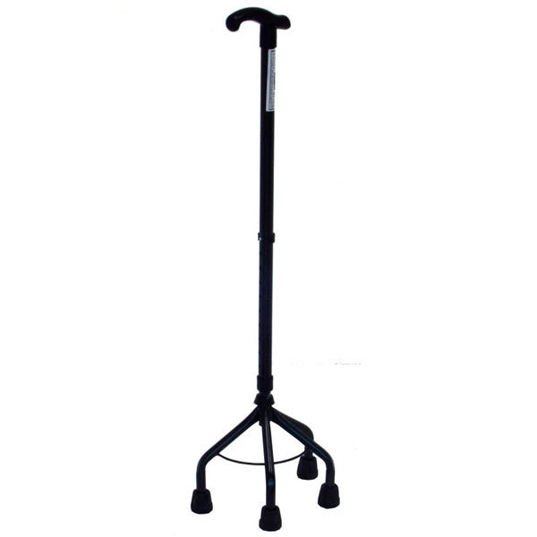عصا از وسایل کمکی توانبخشی می باشد که در حرکت کردن و راه رفتن افراد سالمند و یا کم توان نقش به سزایی ایفا می کند . استفاده از عصا به وسیله افراد کم توان از وارد شدن فشار به پا و یا زانوی آسیب دیده جلوگیری می کند و از مهره های ستون فقرات و کمر در مقابل فشارهای وارده محافظت می کند . عصا در انواع مختلف بر اساس نوع آسیب دیدگی طراحی شده است که از این مجموعه می توان به عصاهای دستی ، عصای لردی ، عصای آرنجی یا البو کراچ ، عصای کوهنوردی ، عصا های سه پایه ، عصای چهارپایه و عصای زیر بغل اشاره کرد . عصا چهار پایه خارجی با ارتفاع قابل تنظیم یکی از پیشگامان صنعت ساخت ابزار توانبخشی سالمندان می باشد . این عصا به دلیل دارا بودن چهارپایه مقاوم به خوبی می تواند تعادل اشخاص کم توان و یا سالمند را حفظ کرده و از زمیت خوردن و افتادن آنها جلوگیری کند. این عصای چهارپایه از بهترین مواد آلمینیوم با گرید بالا ساخته شده است که در عین سبکی از مقاومت بالایی در برابر فشار های وارده ازطرف شخص سالمند برخوردار است . عصا چهار پایه خارجی با ارتفاع قابل تنظیم مناسب برای استفاده افراد سنگین وزن تا 150 کیلوگرم می باشد . شما می توانید از این عصای چهارپایه بسیار مقاوم در داخل منزل و یا بیرون از خانه استفاده کنید . به دلیل قابلیت تنظیم ارتفاع ، این عصا قابل استفاده برای افراد مختلف از کوتاه قد تا بلند قد با قامت هایی از 150 تا 195 سانتیمتر می باشد .