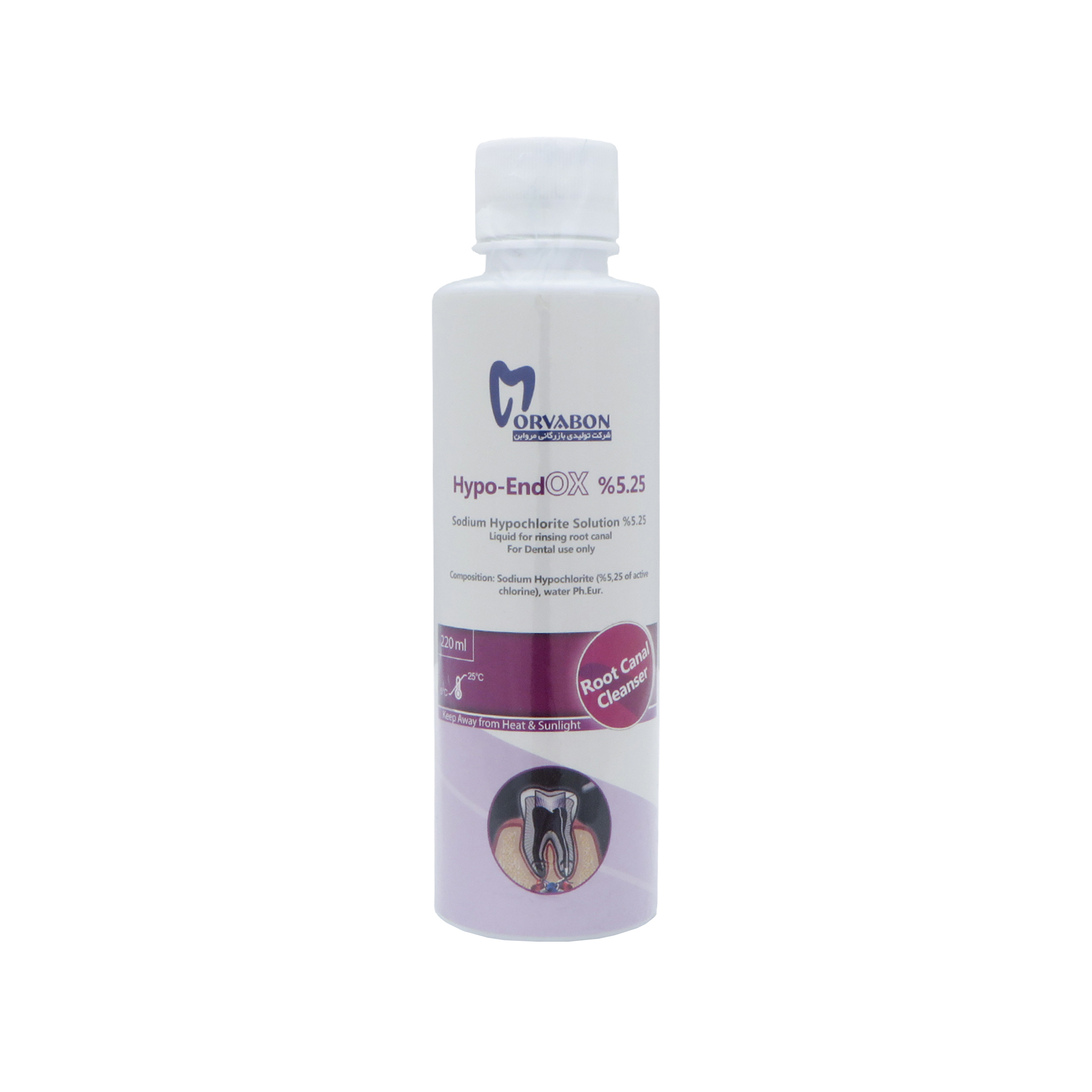 درمانش محلول هایپو کلرید سدیم مروابن مدل Hypo Endox حجم 220 میلی لیتر تجهیزات دندانپزشکی