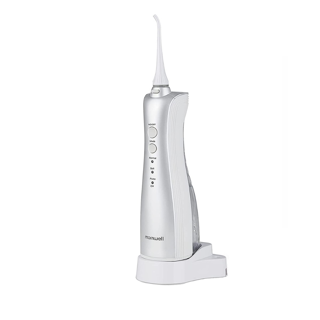 داشتن دندانهای سالم و سفید از مهمترین عوامل در زیبایی افراد است و میتوان با یکبار هزینه صحیح، این سلامتی و زیبایی را سال ها همراه داشت. واتر جت دندان خانگی دستگاهی است که با پاشیدن آب با فشار به دندانها و لثهها، جرمهای باقی مانده و باکتریهای مضری که در اعماق دندانها و لثهها مخفی شده اند و حتی با مسواک از بین نمیروند را از دهان خارج مینماید. دستگاه واتر جت دندان خانگی علاوه بر پاک کردن فواصل بین دندانها، میتواند به کاهش التهاب و خونریزی لثه، جرم گیری بهتر ، تمییز کردن بریجها و دندانهای ایمپلنت و روکش شده کمک نماید. با وجود اینکه ایمپلنتها ازمواد ضد پوسیدگی تولید میشوند اما واتر جت دندان میتواند با از بین بردن جرمهای باقی مانده در اطراف ایمپلنت از عفونت و التهاب لثه و در نتیجه سست شدن ایمپلنت جلوگیری کند که این امر در دوام و ماندگاری ایمپلنت ها تاثیر مشهودی دارد.این واترجت با داشتن سری ارتودنسی میتواند تمام جرم های اطراف سیم ارتودنسی را هم رفع کند.همچنین این محصول برای افرادی که کامپوزیت و لمینیت انجام دادند توصیه می شود . پس می توان نتیجه گرفت که با خرید این دستگاه در واقع چند دستگاه راه همزمان تهیه کردهاید. واتر جت دندان خانگی مدل D50WS mornwell دستگاهی با ابعاد متناسب برای استفاده خانگی است که با داشتن سریهای متعدد امکانات فوق العاده ای فراهم نموده است.این مدل حتی سری مخصوص جهت تمیز کردن زبان را هم به همراه دارد. این مدل دارای مخزنی به حجم 150 میلی لیتر میباشد که در کنار حجم مناسب قابلیت جدا شدن برای پر کردن مجدد و شست و شوی راحت تر را نیز داراست. همراه داشتن پایه شارژر و قابلیت صدای کم از مهمترین ویژگی های این محصول است که این دستگاه را به یک ماساژور عالی برای لثه های شما نیز تبدیل کرده است. این مدل با دارا بودن امکان تنظیم فشار آب در 3 حالت مختلف به صورت normal ، soft و pulse برای پاک کردن پلاکتها و جرمهای اطراف دندان از بهترین دستگاه های واتر جت دندان خانگی بوده که افراد میتوانند هر روز استفاده نمایند.