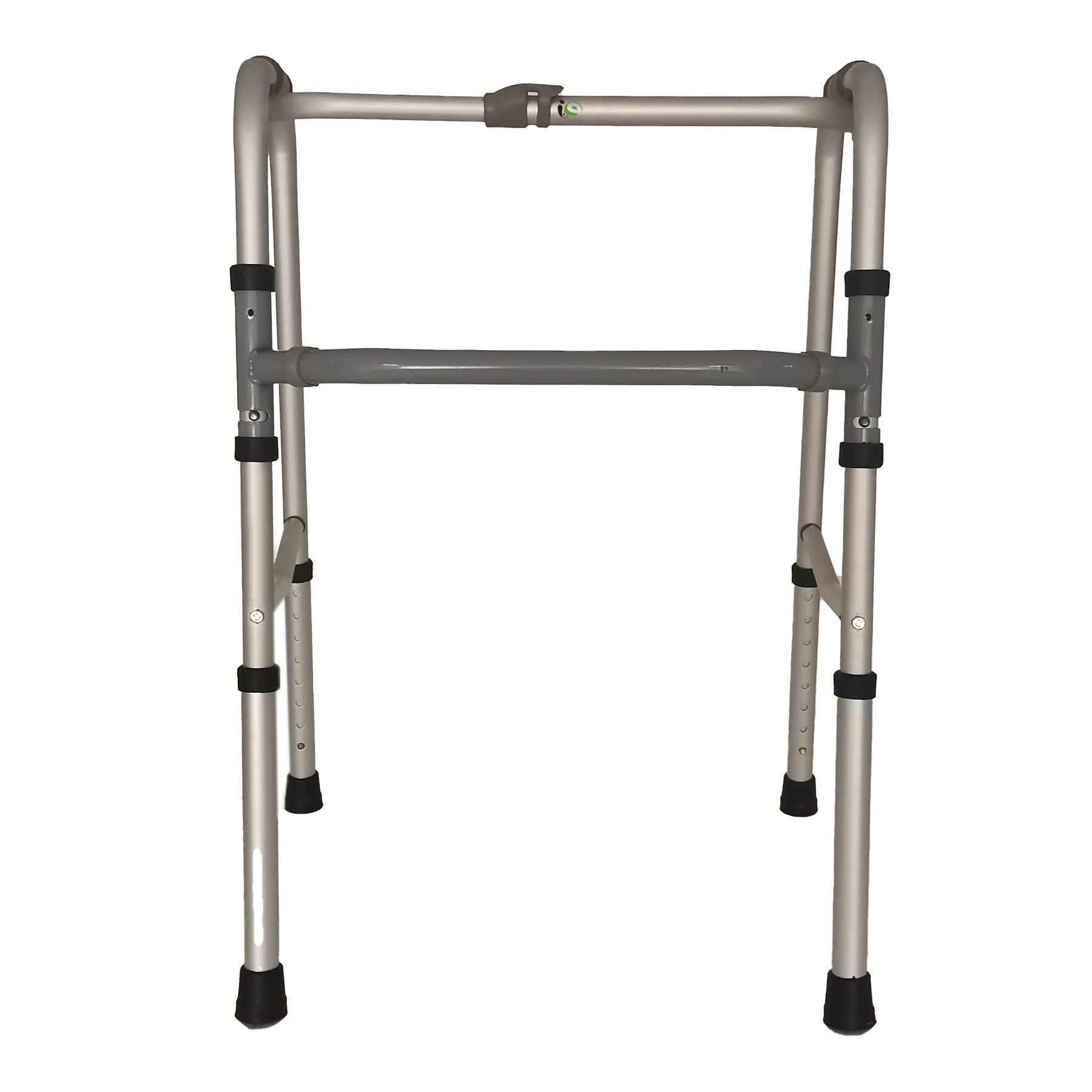 واکر یکی از ابزار های کمکی توانبخشی سالمندان می باشد که افراد سالمند در صورت ناتوانی در حفظ تعادل در هنگام راه رفتن ، نشستن و بلند شدن باید از آن کمک گرفته و از وارد شدن آسیب های احتمالی پیشگیری به عمل آورند. استفاده از واکر توسط سالمندان از وارد آمدن فشار های سنگین و نگهانی به مهره های کمر و مفصل زانو جلوگیری می کند. واکر در انواع مختلف اعم از واکر ثابت و تاشو ، واکر چرخدار و بدون چرخ یافت می شود. واکر تاشو مدل I9-1053 دارای کیفیت بسیار بالا بوده و با اینکه در ایران تولید شده است می تواند با نمونه های خارجی خود نیز رقابت کند. ارتفاع این واکر قابل تنظیم بوده و شما متناسب با طول قد شخص استفاده کننده می توانید میزان ارتفاع آن را تغییر دهید در حالی که بعضی دیگر از واکرها در یک ارتفاع استاندارد به صورت ثابت می باشند . این واکر از نوع تاشو بوده و به راحتی فشار دادن یک پین که در وسط واکر تعبیه شده است می توانید واکر را جمع کرده و جهت حمل و نقل آسانتر از آن بهره جوئید . از طرف دیگر ارتفاع واکر تاشو آی ناین مدل I9-1053 قابلیت تنظیم در چندین مرحله مختلف را نیز دارا می باشد که شما می تواند بنا به اندازه قد سالمند آن را تنظیم کنید . واکر اگر متناسب با قد شخص استفاده کننده تنظیم شود از وارد آمدن فشار به قسمت مچ دست جلوگیری می کند و تعادل شخص سالمند را بهتر حفظ می کند.