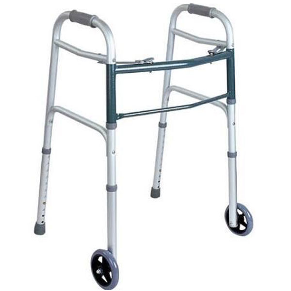 واکر یکی از ابزار های کمکی توانبخشی سالمندان می باشد که افراد سالمند در صورت ناتوانی در حفظ تعادل در هنگام راه رفتن ، نشستن و بلند شدن باید از آن کمک گرفته و از وارد شدن آسیب های احتمالی پیشگیری به عمل آورند. استفاده از واکر توسط سالمندان از وارد آمدن فشار های سنگین و نگهانی به مهره های کمر و مفصل زانو جلوگیری می کند. واکر در انواع مختلف اعم از واکرثابت و تاشو ، واکر چرخدار و بدون چرخ یافت می شود . ارتفاع بعضی از واکر ها قابل تنظیم بوده و شما متناسب با طول قد شخص استفاده کننده می توانید میزان ارتفاع آن را تغییر دهید د حالی که بعضی دیگر از واکرها در یک ارتفاع استاندار به صورت ثابت می باشند . این واکر از نوع تاشو بوده و به راحتی فشار دادن یک پین که در وسط واکر تعبیه شده است می توانید واکر را جمع کرده و جهت حمل و نقل آسانتر از آن بهره جوئید . از طرف دیگرارتفاع این واکر چرخدار قابلیت تنظیم در چندین مرحله مختلف را نیز دارا می باشد که شما می تواند بنا به اندازه قد سالمند آنرا تنظیم کنید . واکر اگر متناسب با قد شخص استفاده کننده تنظیم شود از وارد آمدن فشار به قسمت مچ دست جلوگیری می کند و تعادل شخص سالمند را بهتر حفظ می کند. همچنین دارای 2 عدد چرخ در قسمت جلو خود می باشد که شخص سالمند را از بلند کردن واکر در حین راه رفتن بی نیاز می سازد. برای حرکت کردن کافیست شخص بیمار واکر را به طرف جلو هل دهد تا واکر به آرامی از جای خود حرکت کند.