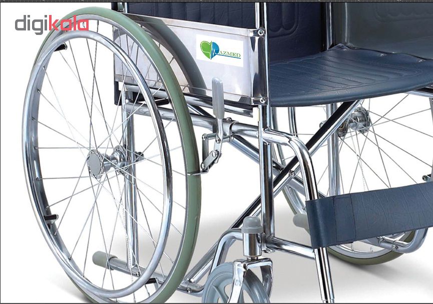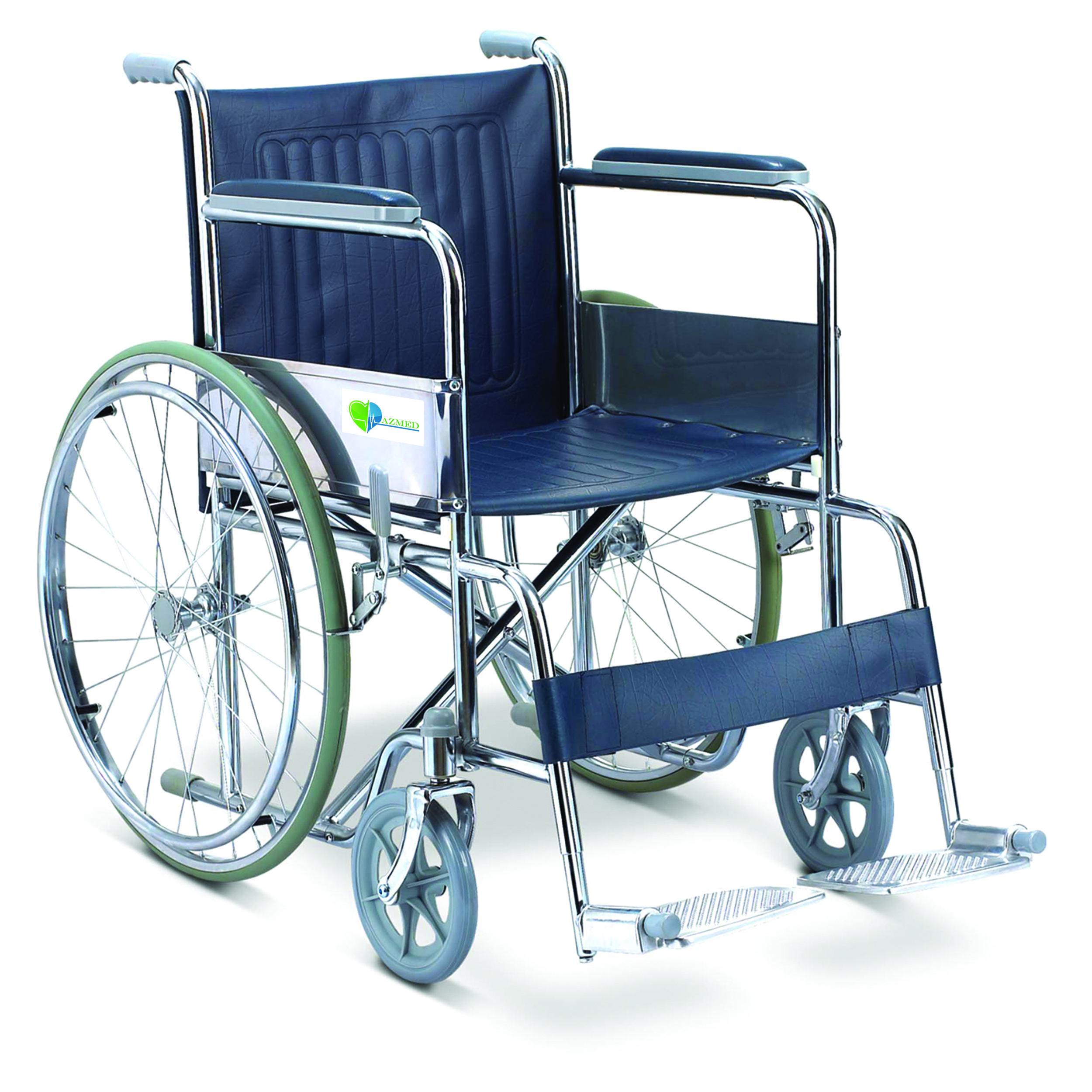 ویلچر فلزی آزمد مدل AZ 809 با داشتن وزنی معادل 16.7 کیلوگرم قابلیت تحمل وزن تا 120 کیلوگرم را داراست.این ویلچر دارای جا دستی و ساق ثابت و جاپایی متحرک از جنس آلومینیوم می باشد، این مدل از ویلچر آزمد با داشتن نشیمنگاهی از جنس مشمع بسیار راحت و در عین حال بادوام است، همچنین چرخهای عقب و جلو این ویلچر توپر می باشد.