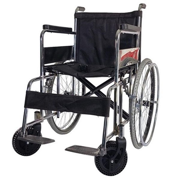 ویلچر ارتوپدی تاشو ،این مدل ویلچر یک صندلی چرخدار مقاوم است که تحمل وزن بیماران تا 120 کیلوگرم را دارد. نشیمن گاه 49 سانتی متری می باشد. دارای دو چرخ بادی، که این چرخ ها باعث می شوند تا بیماران احساس راحتی و امنیت داشته باشند. در دو مدل بدنه استیل و بدنی رنگی استاتیک تولید شده است. دارای کفی و پشتی برزنتی تقویت شده می باشد. کمربند ایمنی دارد که باعث اطمینان بیمار می باشد. چرخ عقب این ویلچر بادی و چرخ جلو طرح بادی است