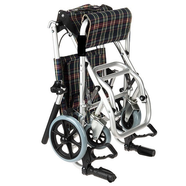 ویلچر مسافرتی مدل 9001 این ویلچر سبک،مناسب مسافرت می باشد و باید توسط همراه جابه جا شود . مهم ترین ویژگی این است که در عین استحکام و دوام ، بسیار سبک و در حدود 7 کیلوگرم و کم حجم است.بدنه ویلچر از جنس آلومنیوم مقاوم می باشد.دارای دستگیره برای جابجایی بیمار یا سالمند توسط همراه است.ویلچر 9001 کاملا تاشو است و استفاده از این ویلچر توسط پرستار یا همراه برای جابجایی بیمار در مسافرت ،هواپیما،آسانسور مناسب ارزیابی شده و توصیه میگردد . سالمندان را میتوان به راحتی از این ویلچر به صندلی اتومبیل ، هواپیما یا حتی تخت منتقل نمود.
